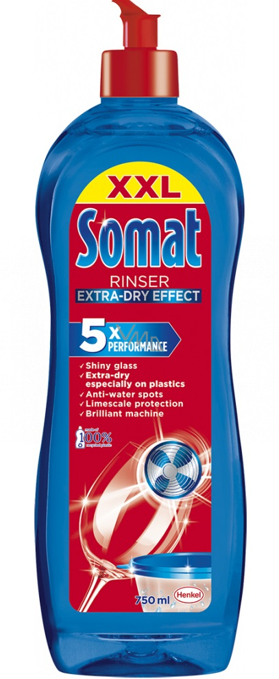 Środek nabłyszczający Somat tworzy na naczyniach wyraźny blask i usuwa resztki, które mogą pozostać w zmywarce podczas cyklu mycia. Ten środek Somat do zmywarki jest specjalnie opracowany do ochrony szklanych naczyń, którym nadaje ostateczny olśniewający blask bez smug i osadów wapiennych. Ponadto może wspomagać szybsze schnięcie naczyń. Produkty Somat do zmywarki zmiękczają wodę dla równomiernego spływania, a także zapobiegają osadzaniu się zanieczyszczeń na już umytych naczyniach.