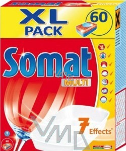 Používejte 1 tabletu pro všechny druhy znečištění. Pro velmi silné znečištění použijte teplotu 65 °C. Používejte společně se Somat oplachovačem a Somat solí.