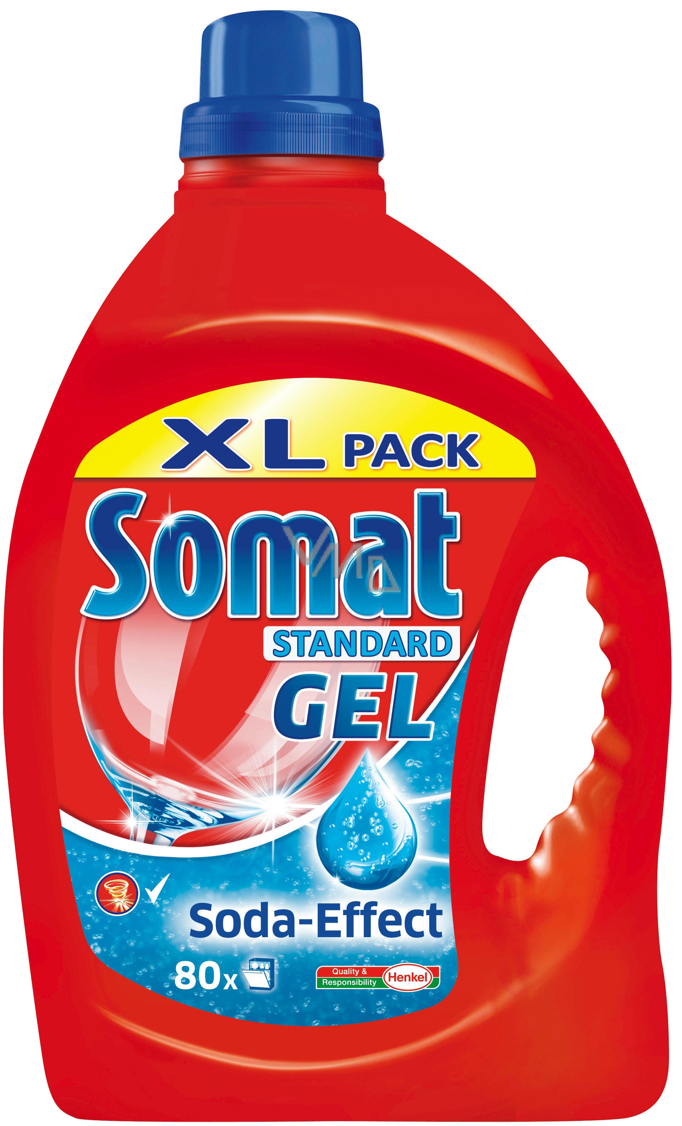 Somat Classic Gel se soda efektem. Neobsahuje fosfáty a je obohacen o sílu kyseliny citronové. Účinně odstraňuje i ty nejodolnější nečistoty - pro perfektní čistotu a zářivý lesk.