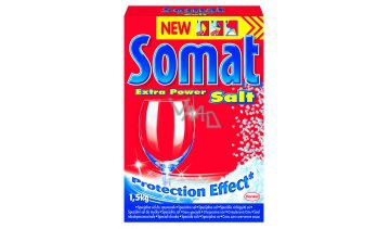 Somat speciální sůl do myčky, dokonale čistá, vysoce jakostní varná sůl, nabízí nejlepší předpoklad pro zářivý výsledek oplachování. Sůl Somat Extra Power změkčuje vodu tak, že čisticí prostředek působí optimálně a zároveň zabraňuje usazování vodního kamene.