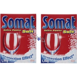 Somat speciální sůl do myčky, dokonale čistá, vysoce jakostní varná sůl, nabízí nejlepší předpoklad pro zářivý výsledek oplachování. Sůl Somat Extra Power změkčuje vodu tak, že čisticí prostředek působí optimálně a zároveň zabraňuje usazování vodního kamene.