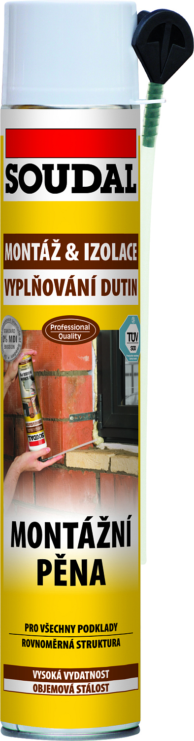 Soudal montażowa pianka PUR jednoskładnikowa rozprężna pianka montażowa gotowa do natychmiastowego użycia za pomocą aplikatora tubkowego. Wykonana z wysokiej jakości surowców, odpowiednia do użycia profesjonalnego. Posiada doskonałą przyczepność do większości materiałów, znakomite właściwości wypełniające oraz właściwości izolacyjne termiczne i akustyczne. Zawiera gaz pędny, który nie szkodzi środowisku.