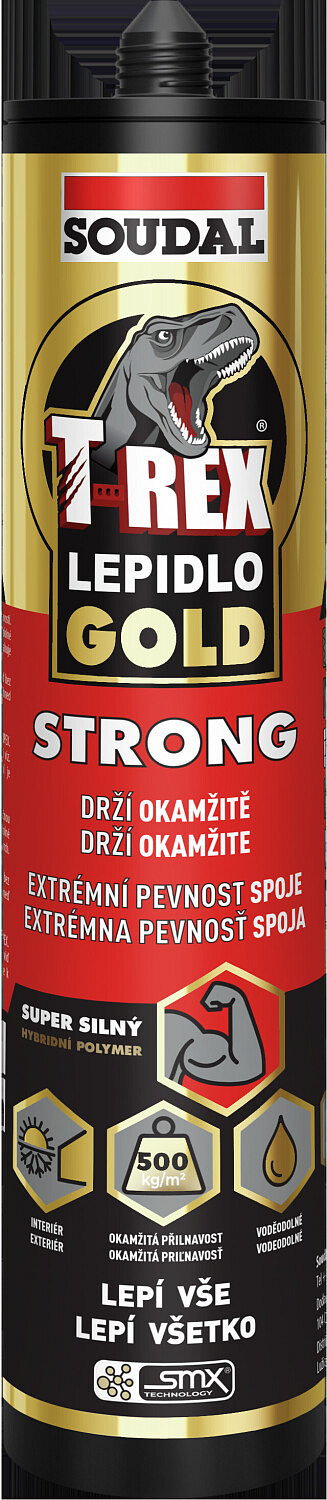 Soudal T-Rex Gold Strong to wysokootwierający klej o ekstremalnej początkowej przyczepności. Tworzy wysoko wytrzymałe, elastyczne i wodoodporne połączenie. Przyczepia się nawet do wilgotnych powierzchni. Wzmocniona włóknami struktura kleju zapewnia wysoką wytrzymałość i długotrwałą odporność sklejonego połączenia.