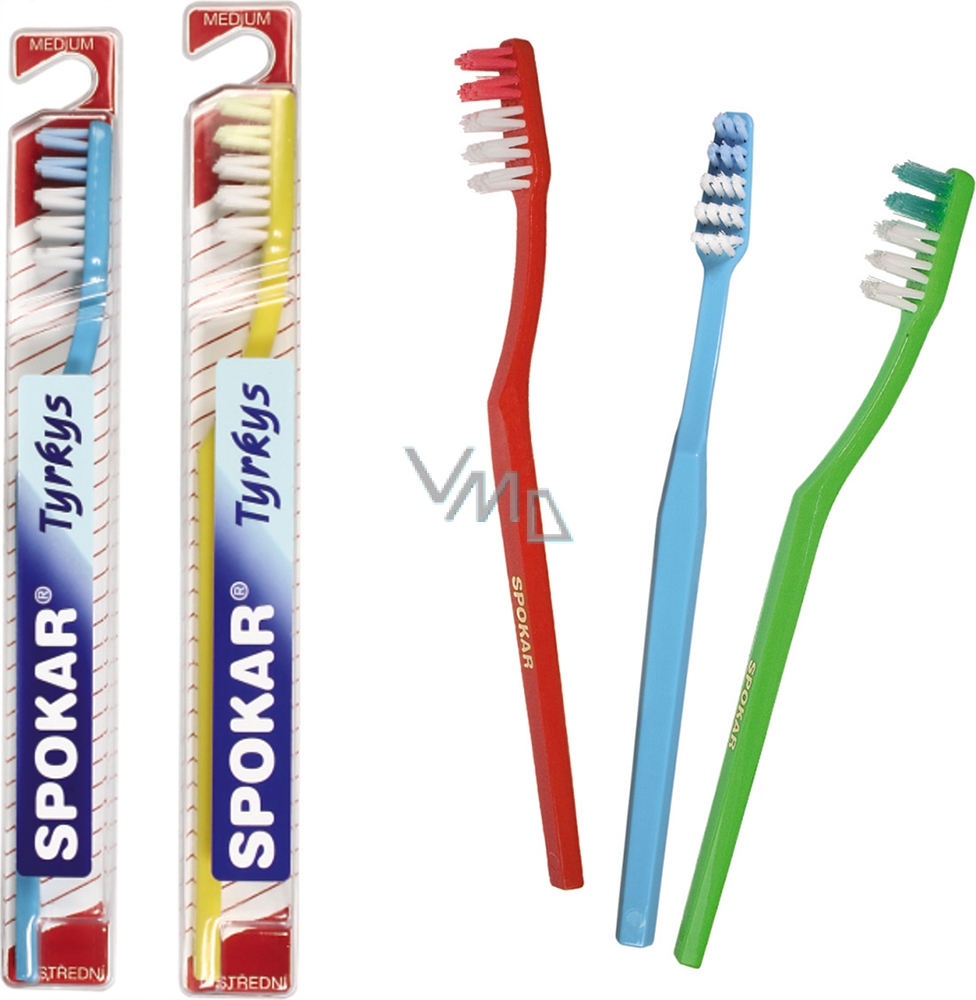 Spokar 3411 Tyrkys střední zubní kartáček Šikmé postavení svazků vláken, V zástřih
