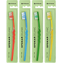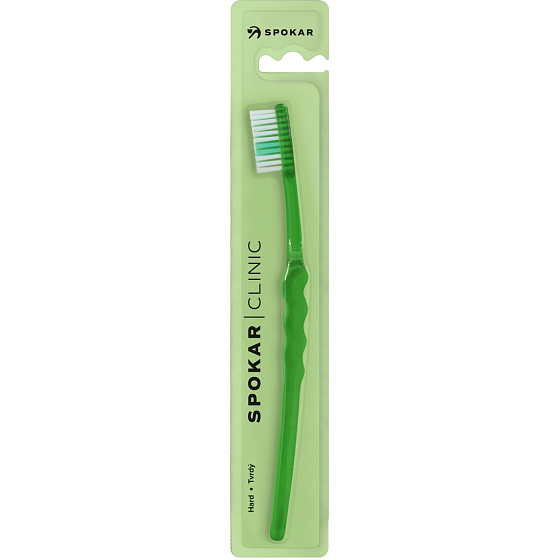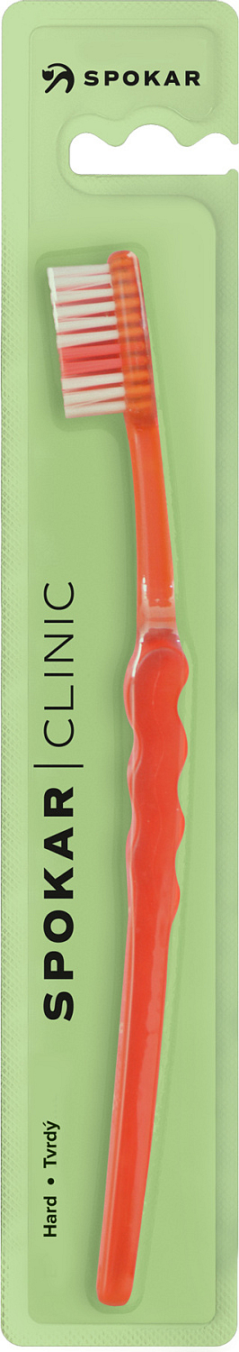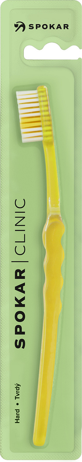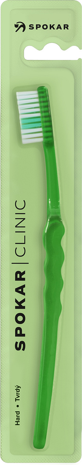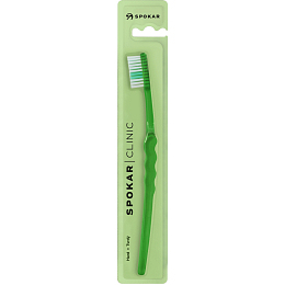 Spokar 3416 Clinic szczoteczka do zębów ma szerokie stopniowanie włókien, ergonomicznie uformowany uchwyt. Włókna tynex. Twardość włókien miękka. Większa głowica jest osadzona włóknami z prostym ścięciem. Wygięty uchwyt z falistą środkową częścią umożliwia łatwe trzymanie, precyzyjną kontrolę szczoteczki podczas czyszczenia i dobry dostęp do wszystkich zębów.