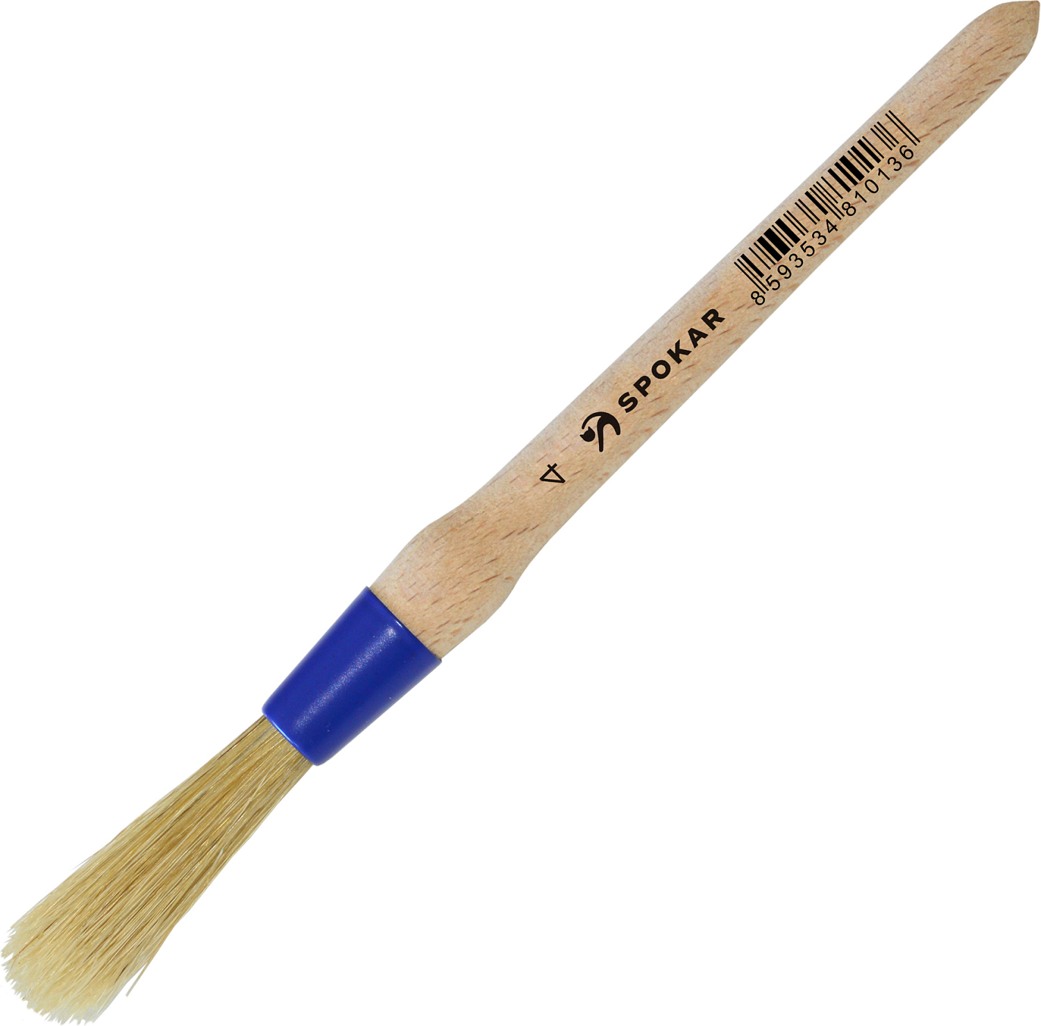 Pędzel okrągły Spokar o rozmiarze 4, jego włókna są ze mieszanki szczeciny i końskiego włosia, jest przeznaczony do wszystkich rodzajów malowanych powierzchni. Ze względu na swój kształt, pędzel jest szczególnie odpowiedni do malowania rur i okrągłych otworów.
