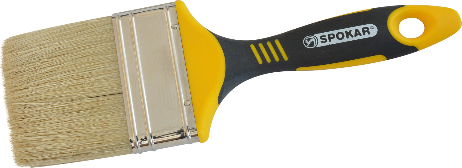 Pędzel płaski 81218 ma dwuskładnikowy plastikowy uchwyt i jest wyposażony w czyste naturalne włosie o długości 60 mm oraz roboczej powierzchni o szerokości 75 mm. Odpowiedni do wszystkich rodzajów powłok malarskich o niskiej i średniej gęstości. Lakiery zawierające rozpuszczalniki oraz wszystkie lazury, lakiery na bazie rozpuszczalników, farby olejne i akrylowe, farby do ścian.