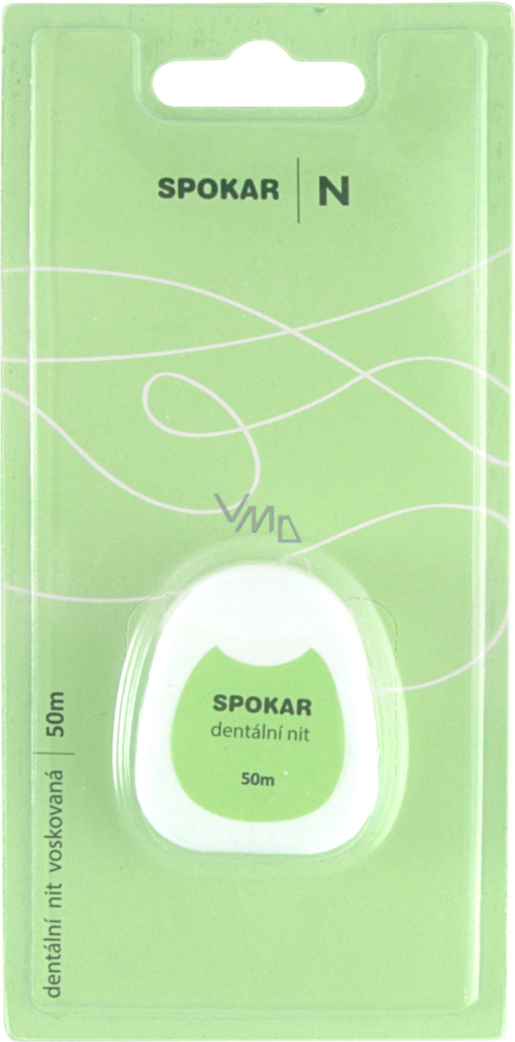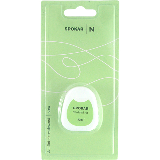 Spokar nić dentystyczna woskowana do czyszczenia przestrzeni międzyzębowych. Zapobiega powstawaniu płytki nazębnej, która powoduje zapalenia i choroby dziąseł. Długość 50 metrów. Nić dentystyczna ma woskowaną powierzchnię.