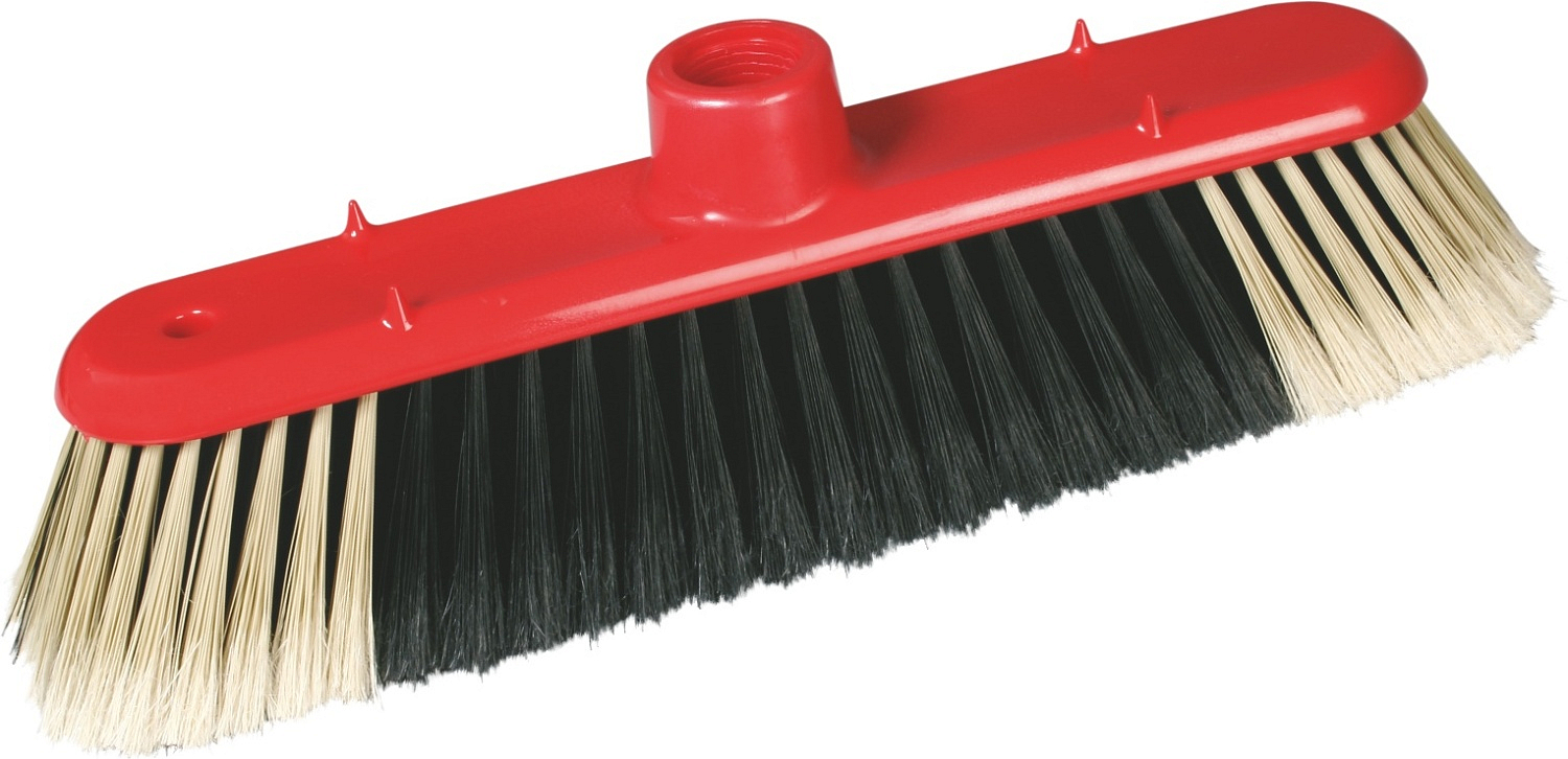 Zestaw miotły z kijem i zmiotki z łopatką. Miotła jest wyposażona w syntetyczne włókno (PET) niepodzielone. Kij (trzonek) metalowy o długości 120 cm z plastikowym pokryciem i gwintem, z otworem do zawieszenia. Łopatka z gumową listwą.