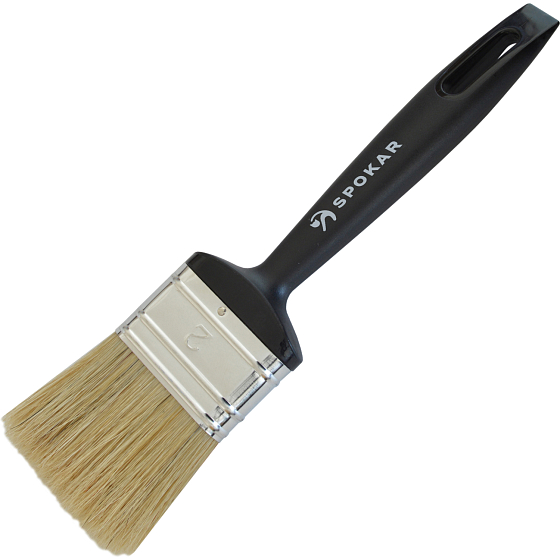 Plastowa rękojeść obrócona w stosunku do główki pędzla dla lepszego uchwytu, zakończenie rękojeści w formie szpatułki - łaty, czyste włosie. Odpowiedni do wszystkich rodzajów farb. Doskonałe wchłanianie farby, całkowicie równomierne przenoszenie farby na powierzchnię. Długa żywotność, łatwe czyszczenie. Świetna końcowa powierzchnia.