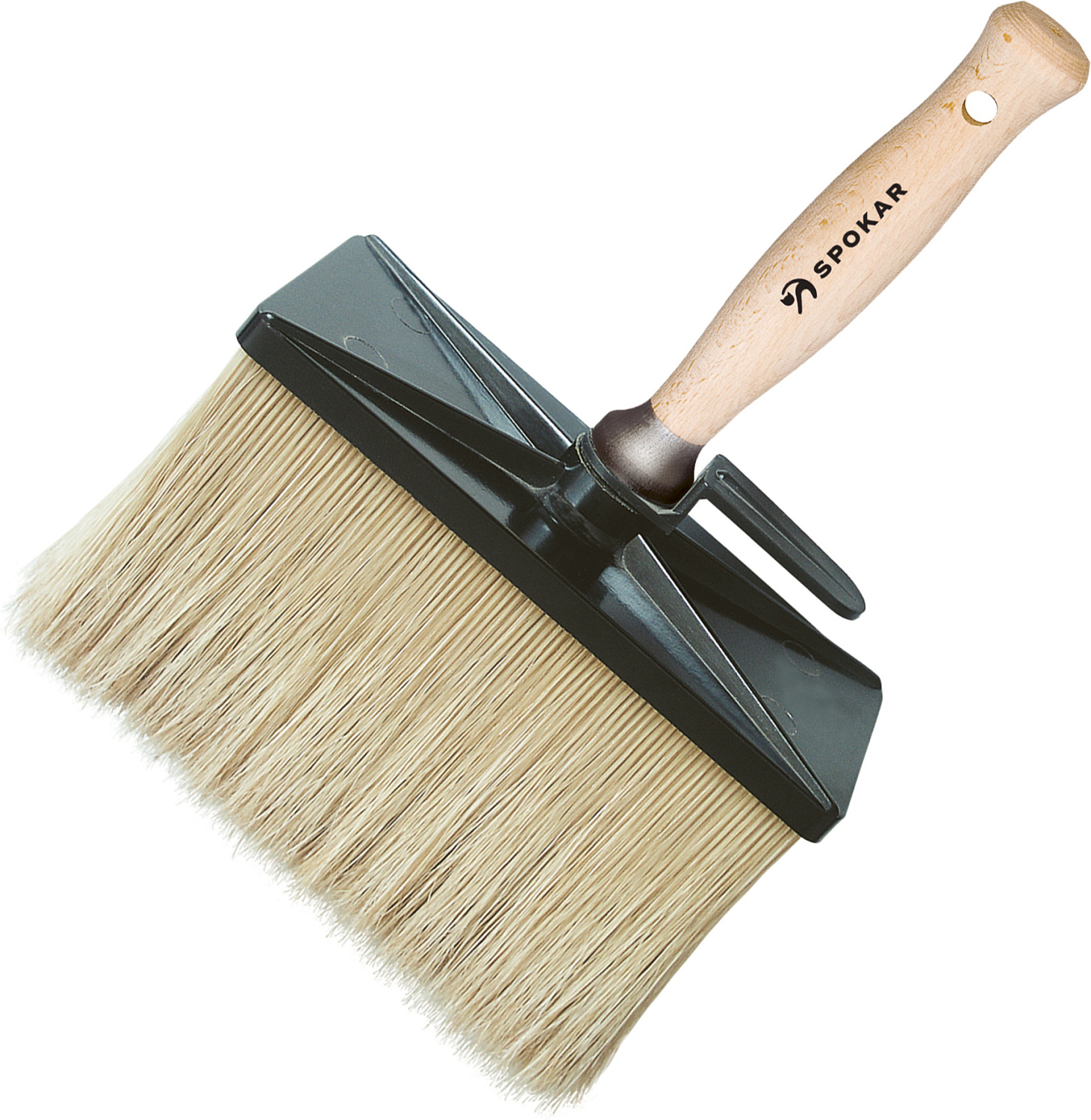 Pędzel malarski jest odpowiedni do wszelkich zwykłych powłok na murze. Rączka jest drewniana, nielakierowana, z gwintem, a włókna to czysta naturalna sierść. Długość części roboczej wynosi 180 mm, szerokość części roboczej 65 mm, a widoczna długość włókien 97 mm. Nie zaleca się stosowania do wapnowania.