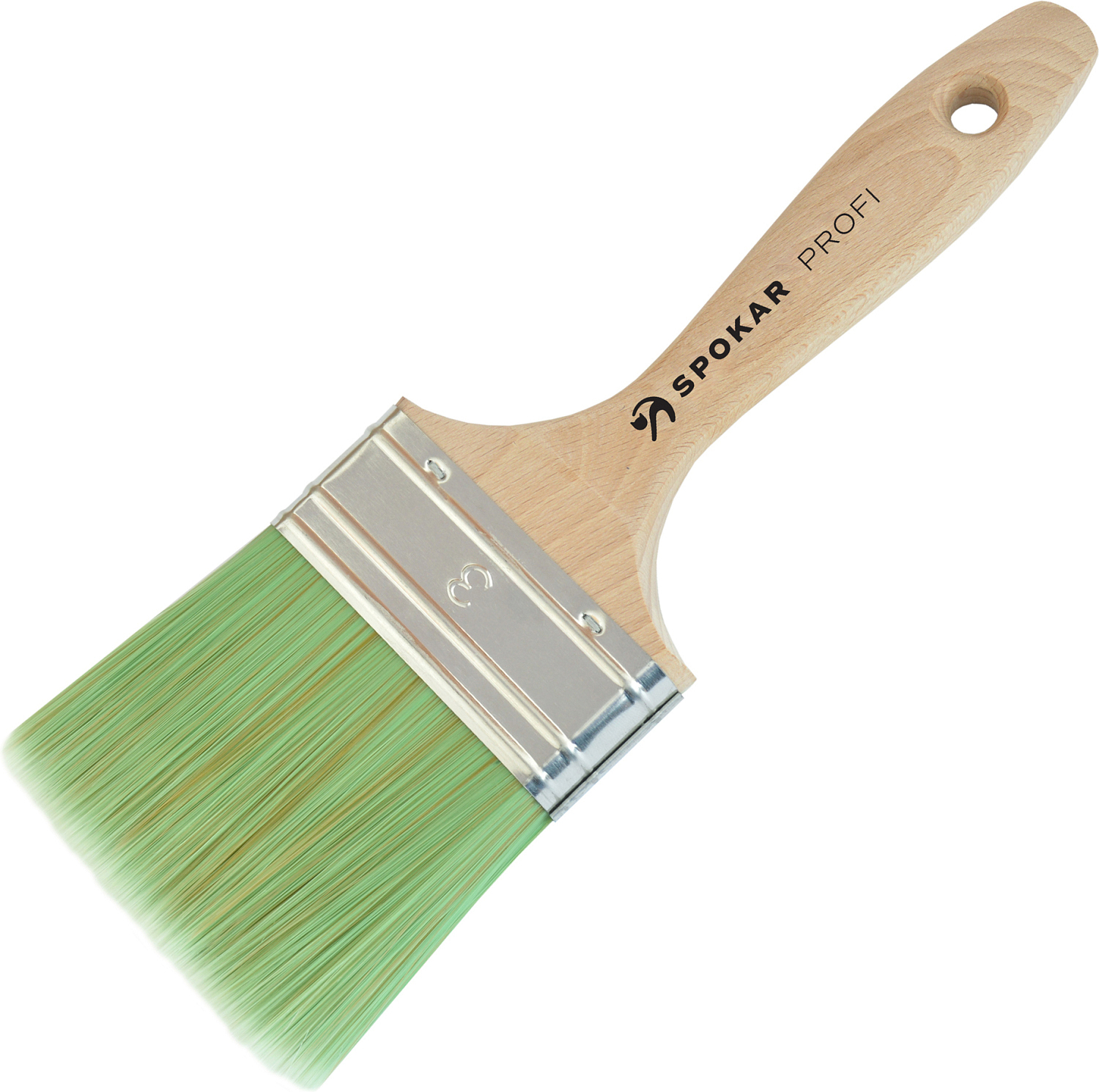 Pędzel przeznaczony do malowania drewna wszelkimi rodzajami lazur. Wyposażony w specjalną mieszankę syntetycznych włókien z zaostrzonymi końcami, drewniany, nielakierowany uchwyt. Dobrze chłonie i oddaje farbę, a dzięki większej sztywności włókien skutecznie wprowadza ją w powierzchnię drewna.