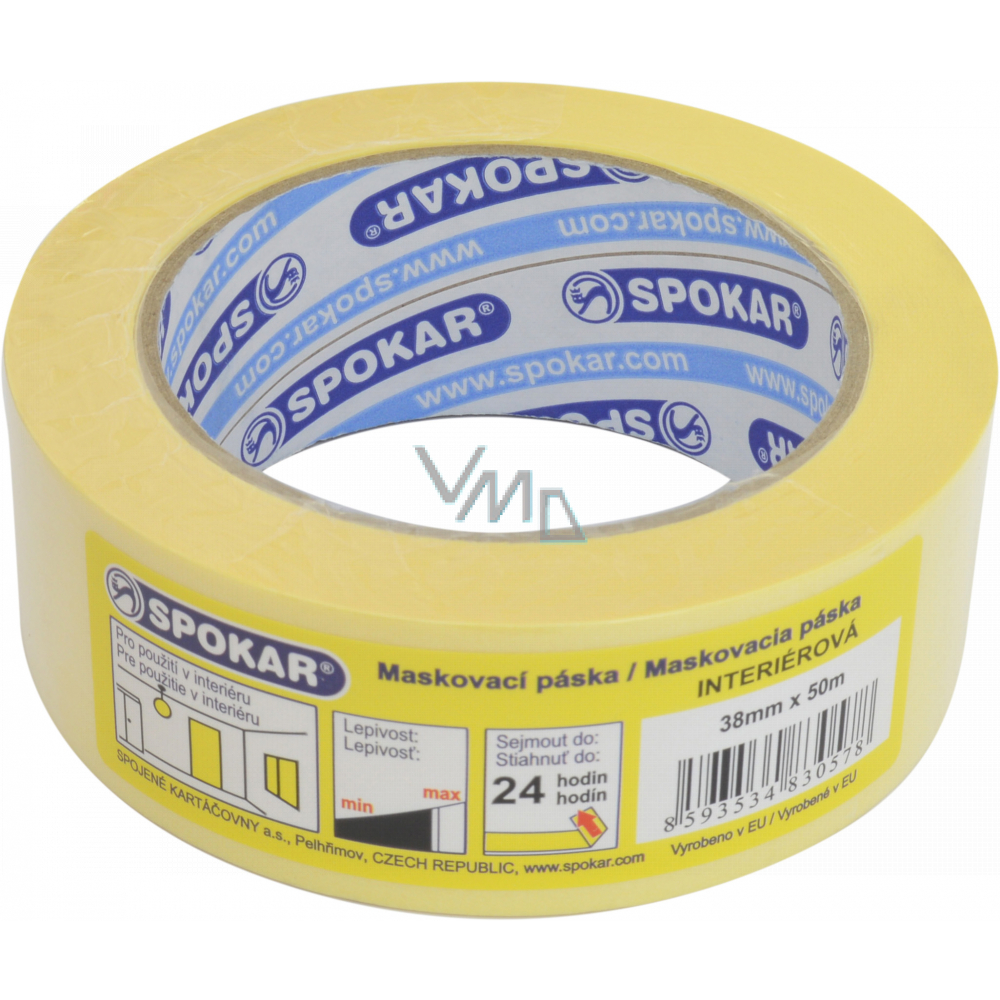 Spokar papírová zakrývací páska do 60 °C. Mírně krepový papír, střední lepivost, pro vnitřní použití do 60 °C, maximální doba nalepení 24 hod.