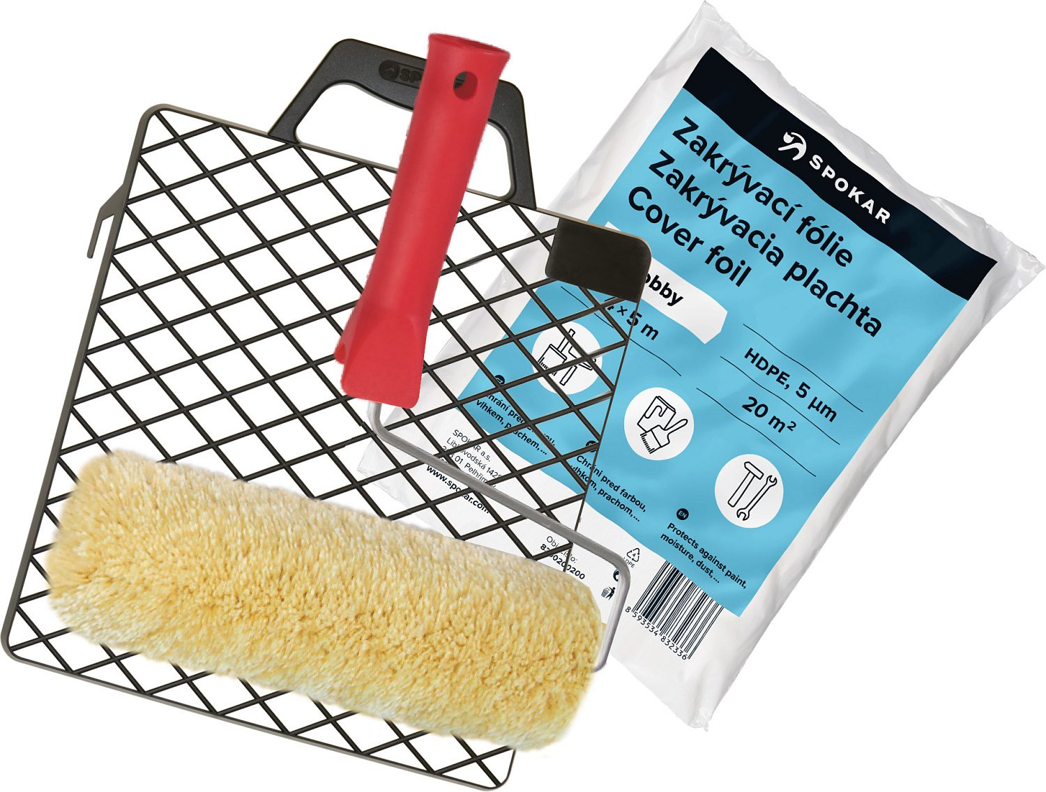 Polyakryl. Wysokiej jakości zestaw przeznaczony przede wszystkim dla majsterkowiczów, stanowi doskonały stosunek jakości do ceny. Jest to znacząco lepsza alternatywa dla zestawów VESTAN. W zestawie znajdują się folia, kratka na wałek oraz wałek z uchwytem o szerokości 250 mm. Wałek malarski Plus żółtozielony do prac malarskich i malarskich na gładkich i delikatnie chropowatych powierzchniach.