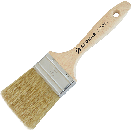 100% naturalne włosie, odpowiednie do wszystkich rodzajów farb o niskiej i średniej gęstości. Płaski pędzel malarski z drewnianym, nieświecącym uchwytem i czystym włosiem.