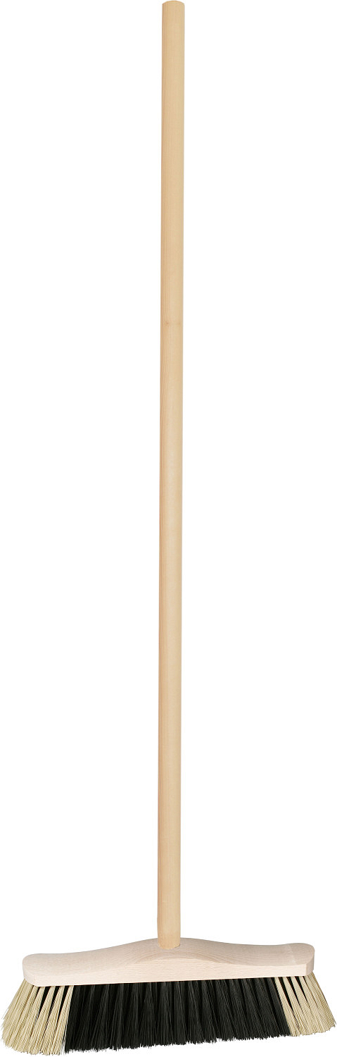 Miotła z trzonkiem z drewnianym, niemalowanym uchwytem o długości 120 cm. Niestrzępione syntetyczne włókna PET. Uchwyt trzonka bez gwintu.czytaj więcej