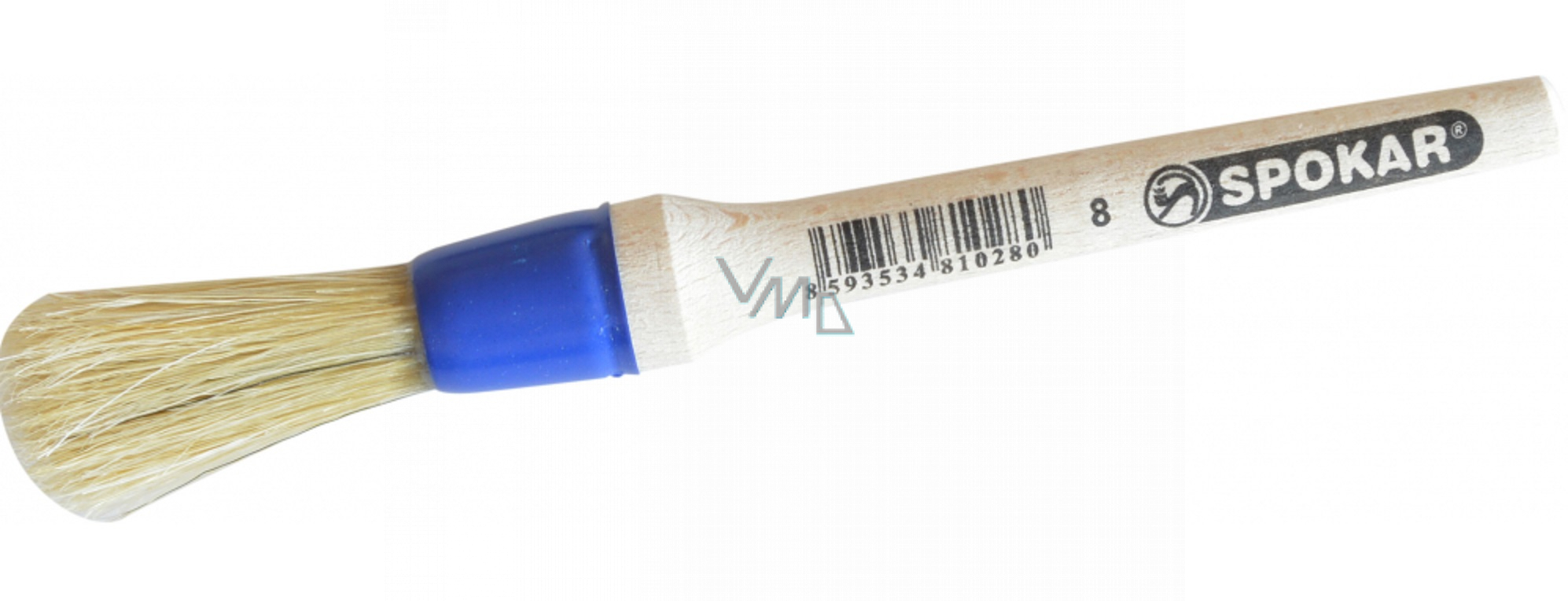 Spokar štětec kulatý o velikosti 8 jehož vlákna jsou ze směsi štětiny a žíně je štětec určen na všechny druhy nátěrových ploch. Vzhledem ke svému tvaru je štětec vhodný především k nátěrům trubek a kulatých otvorů.