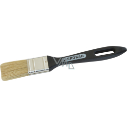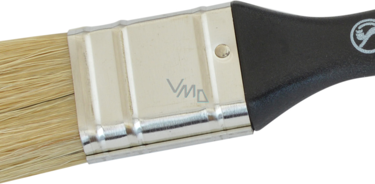 Odpowiedni do wszystkich rodzajów farb. Plastikowa rączka obrócona w stosunku do głowicy pędzla dla lepszego chwytu, zakończenie rączki w formie szpachelki - szpachli, czysta szczecina.