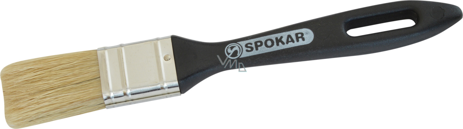 Odpowiednie do wszystkich rodzajów farb. Plastikowy uchwyt obrócony względem głowy pędzla dla lepszego uchwytu, zakończenie uchwytu w formie szpachelki - szpachli, czysta szczecina.
