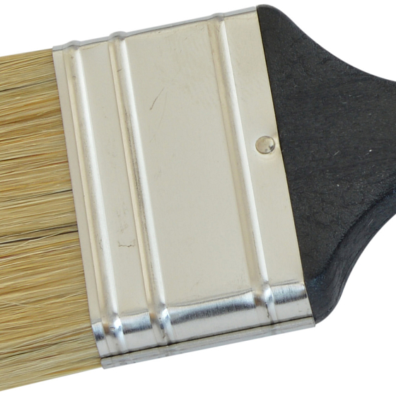 Odpowiedni do wszystkich rodzajów farb. Plastikowa rączka obrócona w stosunku do głowicy pędzla dla lepszego chwytu, zakończenie rączki w formie szpachelki - szpachli, czysta szczecina.