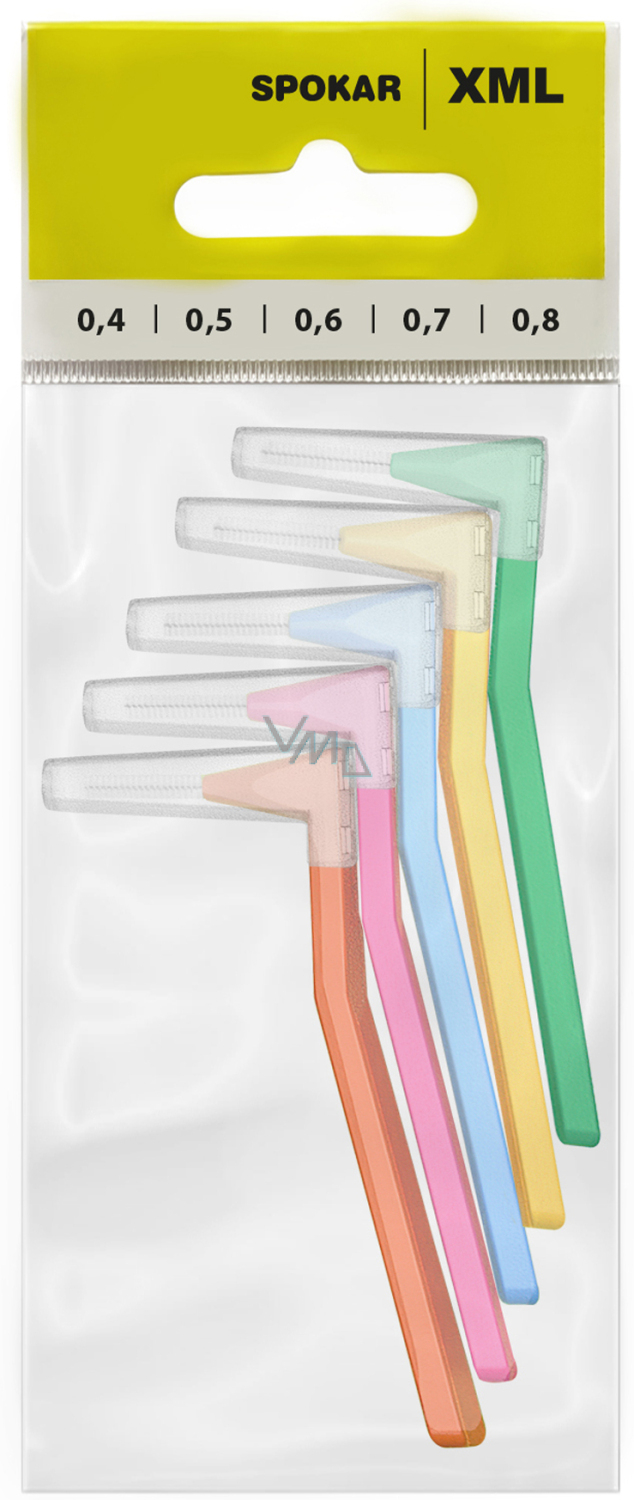 Szczoteczki SPOKAR XML są oferowane w pięciu rozmiarach 0,4; 0,5; 0,6; 0,7 i 0,8. Opakowane są po sześć sztuk w blistrze. Klienci mają zatem możliwość w pełni wyraźnie zobaczyć zarówno kształt uchwytu, jak i samą szczoteczkę oraz zdecydować się na najodpowiedniejszy rozmiar.