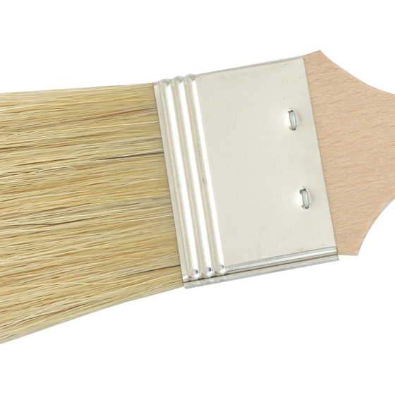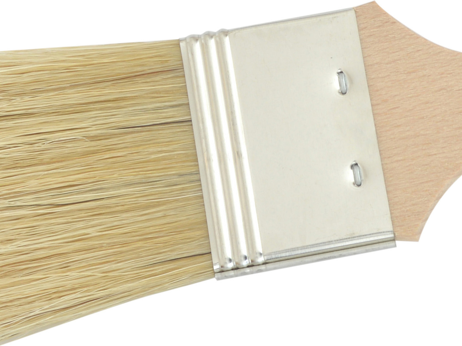 100% naturalne włosie, do wygładzania powierzchni powłoki. Płaski pędzel zatrzaskowy to specjalny, bardzo płaski pędzel, który delikatnie wygładza powłoki. Znajduje zastosowanie przede wszystkim przy imitacji drewna, tj. tworzeniu imitacji struktury drewna na różnych materiałach podkładowych, np. meblach, drzwiach, tynkach itp.