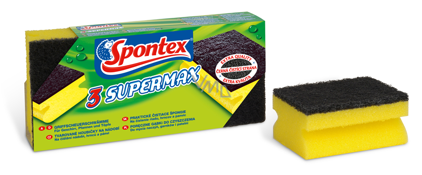 Wysokiej jakości formowane gąbki z czarną drucianką na powierzchni, skuteczne do mycia talerzy, garnków i patelni. 3 sztuki. Wymiary: 9 x 7 x 4,5 cm