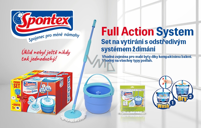 Kompaktní úklidová sada rotačního třásňového mopu a vědra je vhodná na všechny typy podlah. Ždímání je založeno na dvou úrovních ve kbelíku, kde spodní úroveň slouží pro namočení mopu a vrchní úroveň je určená pro vyždímání mopu. Snadno použitelný rotační systém zajišťuje účinné vyždímání mopu do požadované vlhkosti pro perfektní vytření. Rotace ždímače se zajišťuje jednoduchým pohybem nahoru a dolu na rukojeti tyče. Po vyždímání se vytírací hlava automaticky sklopí do výchozí pozice určené k okamžitému vytírání. Určitě oceníte, že vaše ruce nepřijdou do kontaktu s vodou. S tímto perfektním mopem bude vaše podlaha vždy čistá bez větší námahy při vytírání.