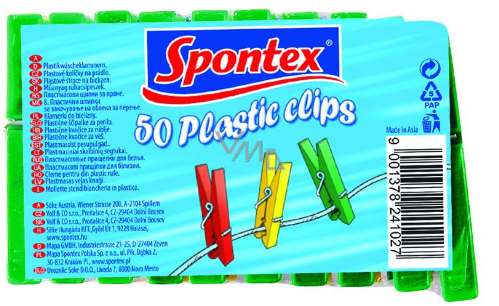 Hledáte-li spolehlivé kolíčky na prádlo, pak zvolte prověřenou značku Spontex. V praktickém balení vám nabízí 20 kolíčků na věšení prádla. Jedná se o vícebarevnou sadu klasických kolíčků vyrobených z odolného plastového materiálu a vybavených solidní ocelovou pružinou. Kolíčky na prádlo se nelámou ani nerezavějí, takže je můžete bez obav použít k přichycení vašeho vypraného prádla i na venkovní prádelní šňůru. Díky plastovému provedení je můžete v případě potřeby i snadno umýt.