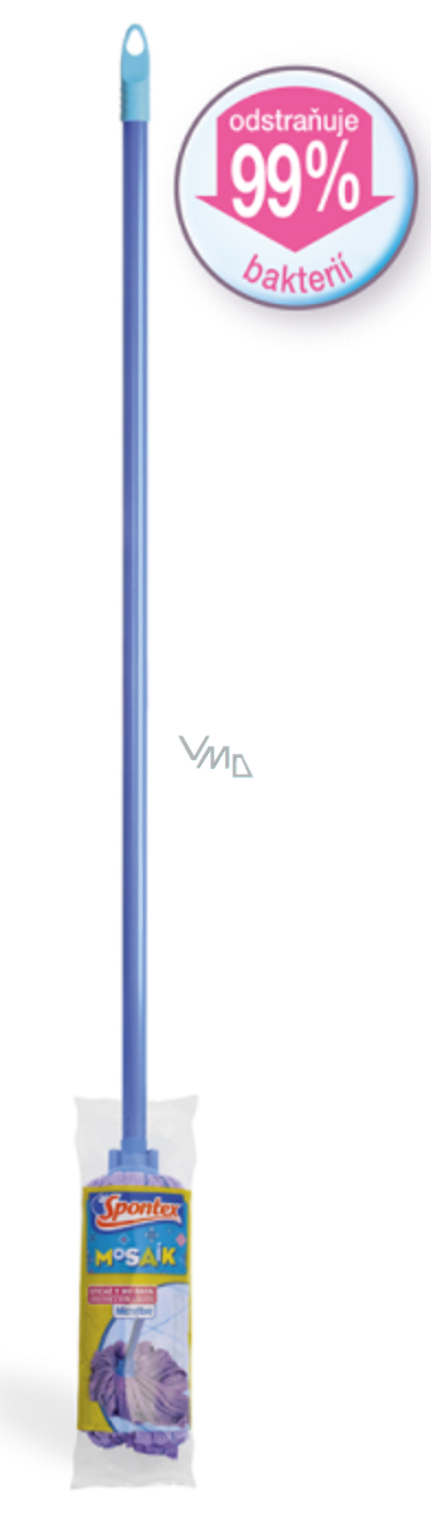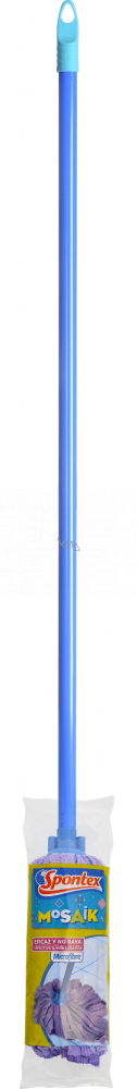 Nowość wśród mopów sznurkowych, to Spontex Mosaik. Twoje sprzątanie z nim będzie jeszcze prostsze, niż jesteś przyzwyczajony. Jego głowa łączy bowiem właściwości dwóch skutecznych materiałów – fioletowe sznurki są z mikro włókna, a ich niebieskie paski z poliestru.