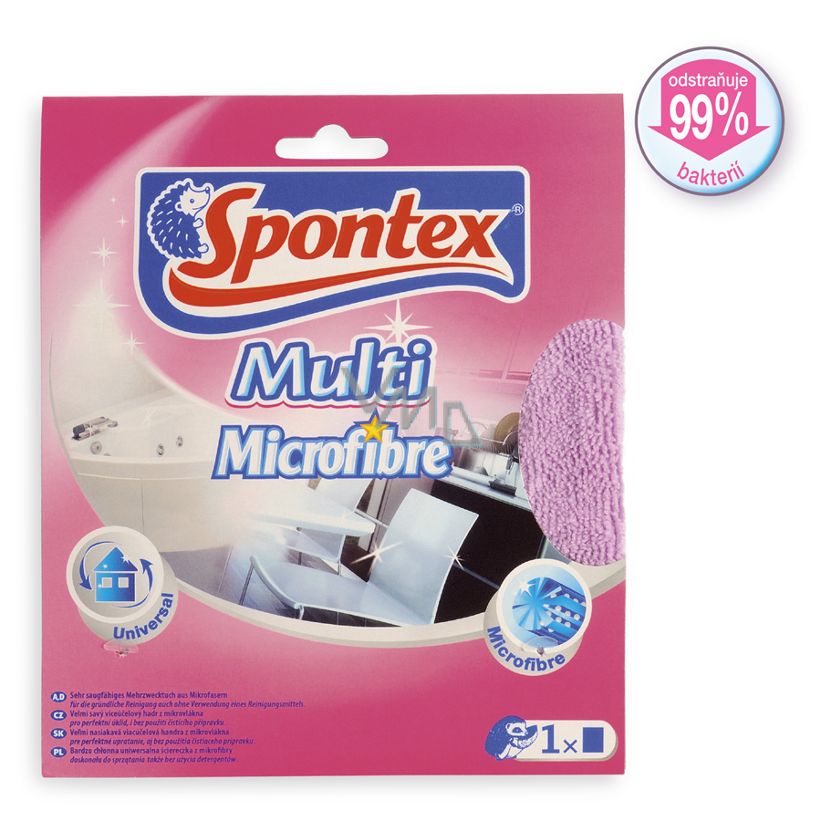 Ściereczka uniwersalna Spontex jest odpowiednim pomocnikiem do wycierania kurzu, dzięki strukturze mikrowłókien wchłania kurz w siebie i nie tylko go przesuwa, jak ma to miejsce w przypadku innych ściereczek. Mechanizm mikrowłókien można zobaczyć na zdjęciu. Ściereczka nadaje się do użycia na sucho i na mokro, można ją używać nie tylko jako ściereczki do kurzu, ale także na przykład do mycia naczyń, wycierania powierzchni, polerowania umytego okna. Materiał jest bardzo przyjemny w dotyku. Nie musisz się obawiać używać ściereczki na bardzo brudnych i zakurzonych przedmiotach, możesz ją potem łatwo wrzucić do pralki, wyprać w 60°C i używać dalej.