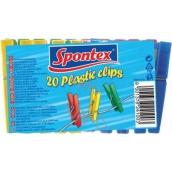 Hledáte-li spolehlivé kolíčky na prádlo, pak zvolte prověřenou značku Spontex. V praktickém balení vám nabízí 20 kolíčků na věšení prádla. Jedná se o vícebarevnou sadu klasických kolíčků vyrobených z odolného plastového materiálu a vybavených solidní ocelovou pružinou. Kolíčky na prádlo se nelámou ani nerezavějí, takže je můžete bez obav použít k přichycení vašeho vypraného prádla i na venkovní prádelní šňůru. Díky plastovému provedení je můžete v případě potřeby i snadno umýt.