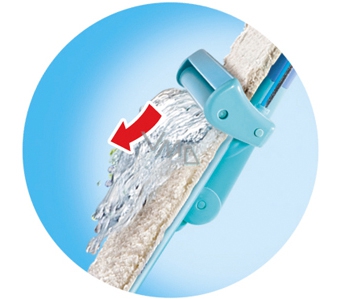 Složte hlavici mopu do vertikální polohy. Stlačte rukojetí ždímací váleček dolů a nahoru a dokonale vyždímejte.