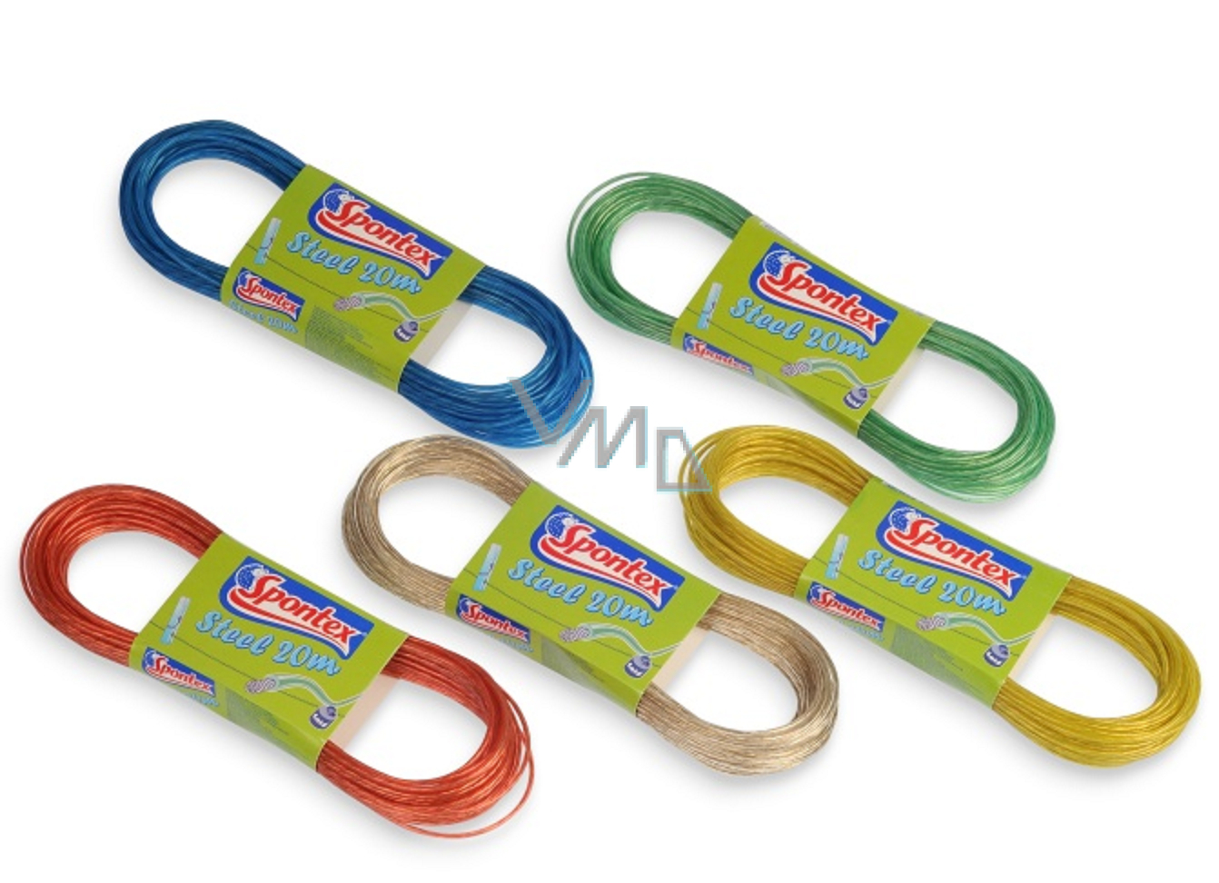 Ocelová šňůra na prádlo s plastovým povrchem, udrží až 60kg prádla, 20m. Barvy zasíláme dle skladové zásoby.