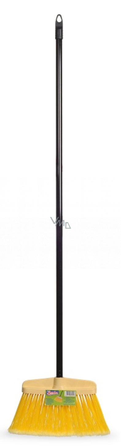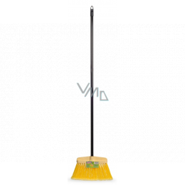 Sprzątanie tarasu, ogrodu lub podwórka? Z naszą miotłą na zewnątrz to żaden problem! Jej jaskrawożółte włosie jest z odpornej syntetyki, która radzi sobie z brudem, piaskiem, liśćmi i innymi zanieczyszczeniami. Metalowy trzonek ma 120 cm długości i jest wyposażony w praktyczne oczko do zawieszenia.