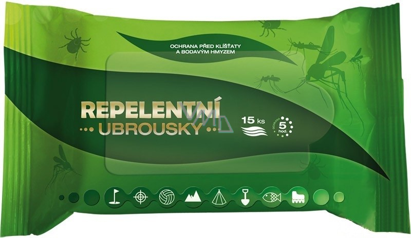 - Repelentní ubrousky přípravek na kůži a oděv k ochraně před klíšťaty a bodavým hmyzem.