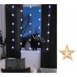 Průhledná hvězdná opona s teplým bílým leskem pro vnitřní použití. Umístěte záclonu do okna jako krásnou dekoraci se světlem.