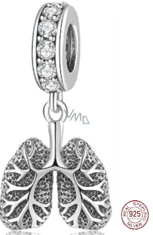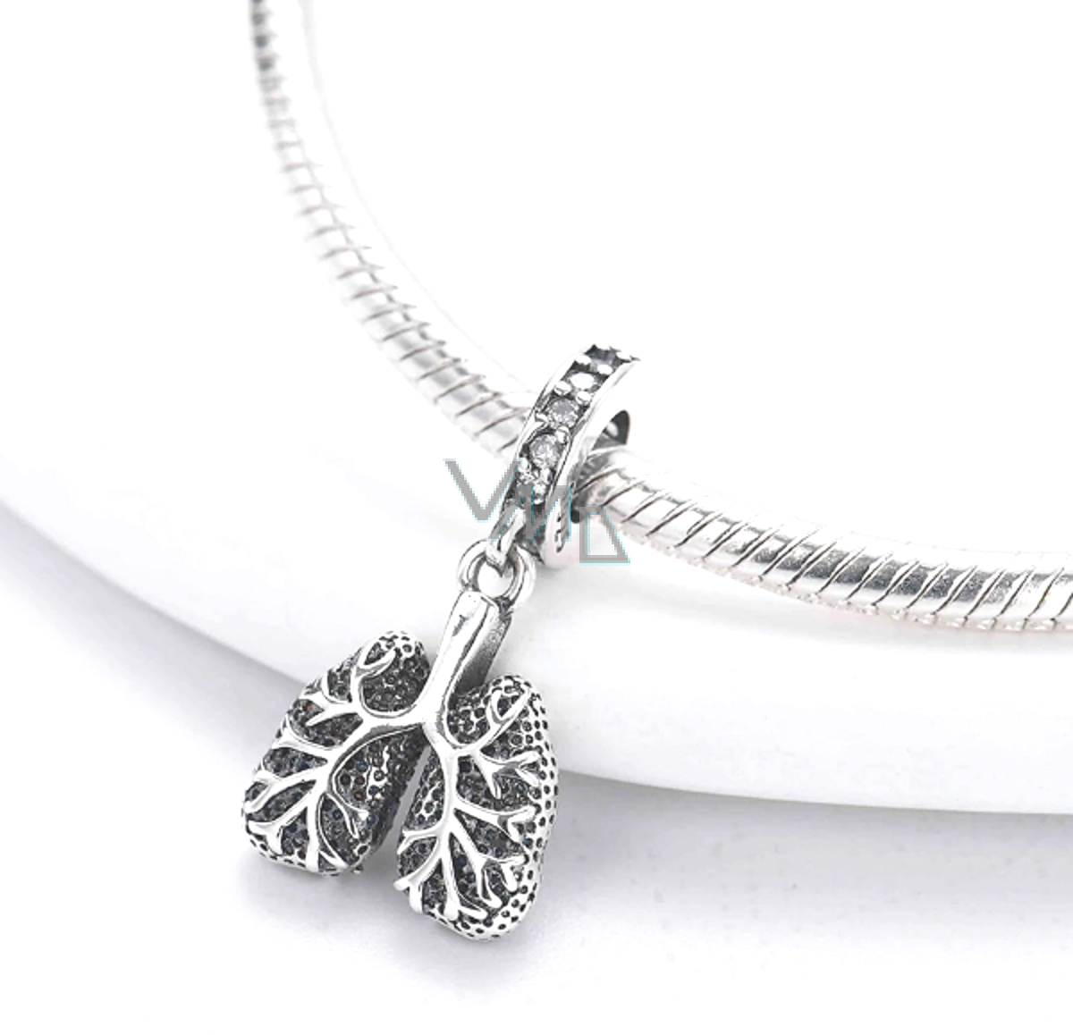 Charm Srebrna biżuteria 925 Anatomia biologii - Płuca symbol kontaktu z zewnętrznym światem, zawieszka na bransoletkę