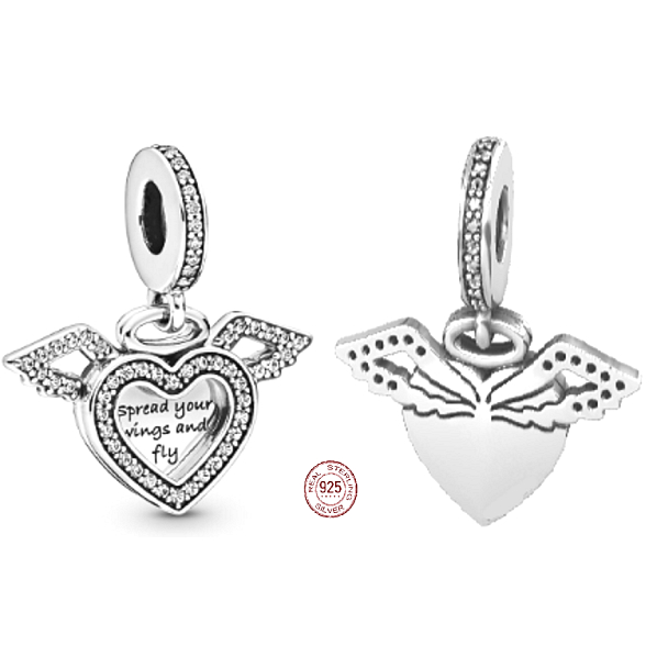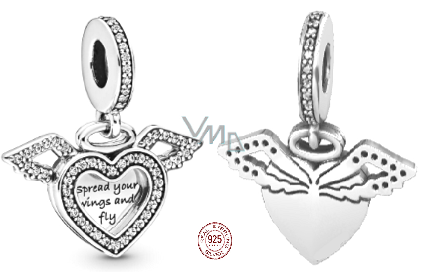 Zawsze miej przy sobie swojego anioła stróża, który będzie nad Tobą czuwał, z tą zawieszką Serce i Anioł skrzydła ze srebra z cyrkoniami. Podwójna zawieszka, inspirowana starożytnymi niebiańskimi stworzeniami, ozdobiona jest aniołem skrzydła z tyłu i delikatną aureolą w górnej części. Zawieszka z aniołem skrzydła jest ozdobiona grawerem z podnoszącym na duchu i inspirującym cytatem „Spread your wings and fly”, „Rozwiń swoje skrzydła i leć”, aby przypominać nam, abyśmy nigdy nie pozwalali niczemu nas hamować, zniechęcać, gdy chodzi o spełnianie naszych marzeń.