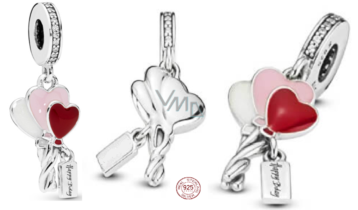 Zawieszka ze srebra próby 925 Balony na urodziny, charms do bransoletki urodziny