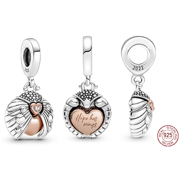 Dodaj do swojej kolekcji ekskluzywną zawieszkę. Jest ręcznie wykonana w srebrze menniczym i delikatnie pozłacana 14-karatowym różowym złotem, osadzona syntetycznym diamentem. Srebrne skrzydła są ruchome i mają kształt biedronki, wewnątrz znajduje się serduszko z wygrawerowanym napisem "Nadzieja ma skrzydła". W środku błyszczy zawieszka z filigranowym serduszkiem i syntetycznym diamentem. Ten unikalny wzór zainspiruje Cię do marzeń.