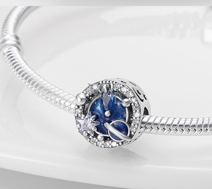 Charm Srebrna 925 Cesta galaktyk wszechświat, koralik na bransoletkę symbol