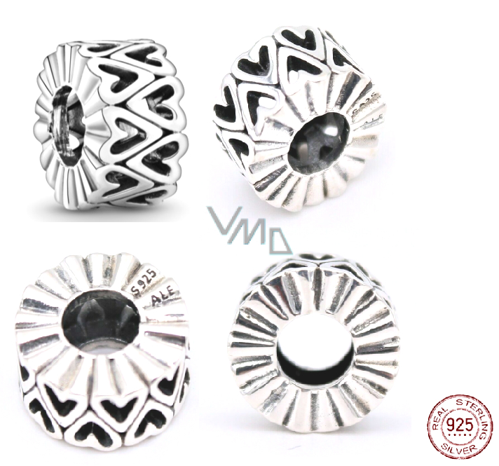 Zawieszka ze srebra próby 925 Serce z dwoma sercami, stoper, koralik do bransoletki miłość