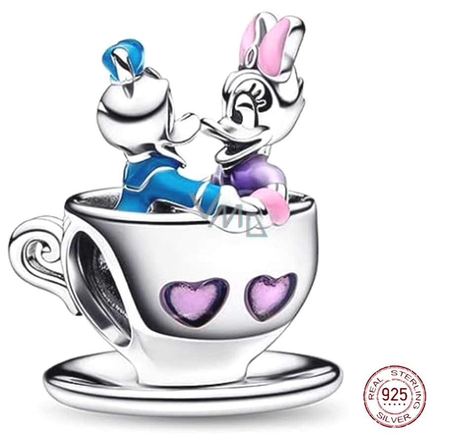 Zawieszka ze srebra próby 925 Disney Disneyland Kaczor Donald i Daisy w łódce, koralik do bransoletki