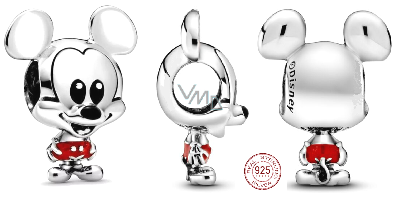 Zawieszka ze srebra próby 925 Disney Mickey Mouse, koralik do bransoletki
