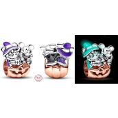 Zawieszka ze srebra próby 925 Disney Mickey Mouse & Minnie Mouse Halloweenowa świecąca koralka do bransoletki