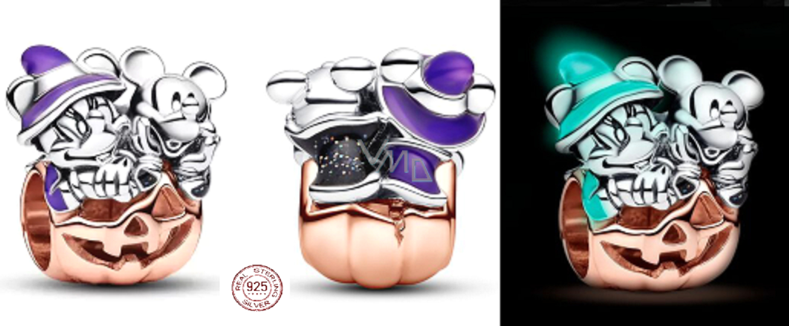 Zawieszka ze srebra próby 925 Disney Mickey Mouse & Minnie Mouse Halloweenowa świecąca koralka do bransoletki