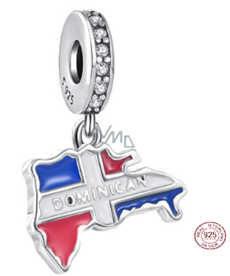 Charm Srebrny 925 Flaga Dominikanskiej Republiki - wisząca mapa, zawieszka na bransoletkę podróżniczą