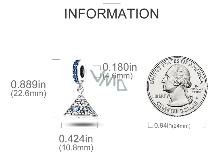Wiszący charms z egipską piramidą, ozdobiony okiem, starożytnym symbolem ochrony. Zaprojektowany z gładką niebieską emalią i błyszczącymi białymi i niebieskimi kamieniami cyrkonowymi oraz wygrawerowanym napisem „Egypt call you”. Idealne uzupełnienie Twoich podróży lub bucket list.