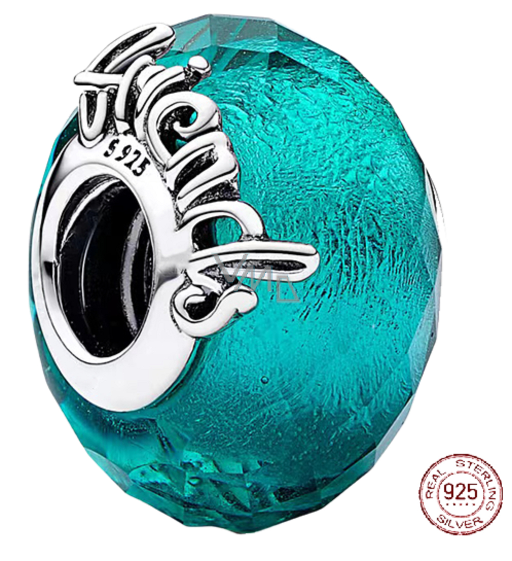 Zawieszka ze srebra próby 925 z fasetowanego szkła Murano, koralik do bransoletki przyjaźni